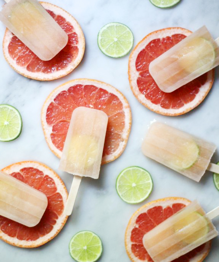 Paloma Popsicles: This Mexican cocktail, made with tequila and grapefruit juice, has been reimagined as an icy pop by Donuts, Dresses and Dirt—complete with lime garnish!