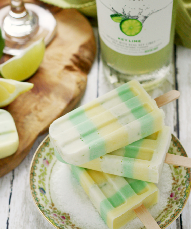 Lemon-Lime Margarita Creamsicles: Kick those ice cream truck pops to the curb! Girlichef shows how pretty striped popsicles have got it all—creamy, tangy, cold and boozy!