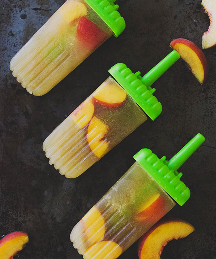 Bourbon Tea Lemonade Popsicles: If you've never "spiked" your lemonade before—well, what are you waiting for? These beautiful, refreshing pops from So Let's Hang Out are laden with freshly sliced peaches and are your new favorite summer treat. Find a porch, now.