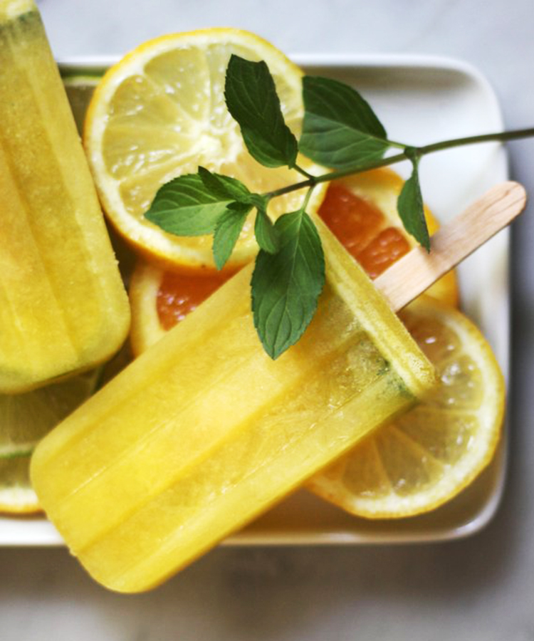 Citrus Mojito Pops: The classic mojito gets a citrus "upgrade" from Donuts, Dresses and Dirt, with the addition of fresh lemon and orange juice to the traditional lime, rum and mint!