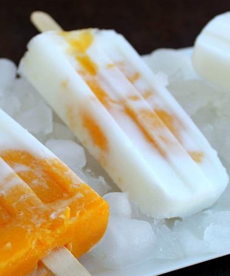 Coconut Mango Popsicles: These tasty pops by Happy Food Healthy Life are both creamy and tangy, thanks to a combination of Greek yogurt and coconut rum. Fresh mango provides a "pop" of happy color too!