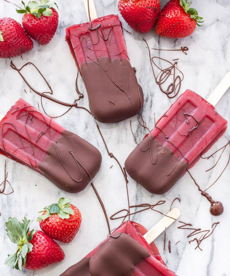 Dipped Strawberry Red Wine Popsicles: Take your next "girls night out" to the next level, and serve these decadent pops—like the best chocolate covered, wine-infused strawberries you've ever had! Thanks, Spoonful of Flavor!