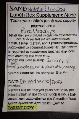 When Kristen Bartkiw of Manitoba, Canada, sent her kids off to day care with a home-cooked meal for lunch, the last thing she probably expected was to be slapped with a $10 fine—and a note that said her kids had been given Ritz crackers. (You know, to make up for her lunch's lack of nutritional value.) But that's exactly what seems to have happened.